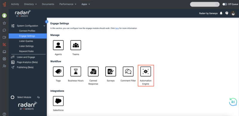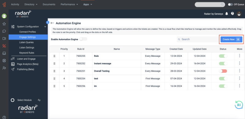 The “Automation Engine” will allow the users to define the rules based on triggers and actions when the tickets are created. This visual flow chart-like interface manages and monitors the rules added effectively.