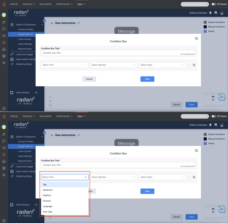 • Every Message – If “Every Message” is selected the automation rule will execute for all the messages wherever the condition is satisfied