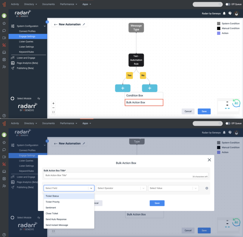 Once you are done adding the conditions, you can select the bulk action and add the actions that is expected to take place.